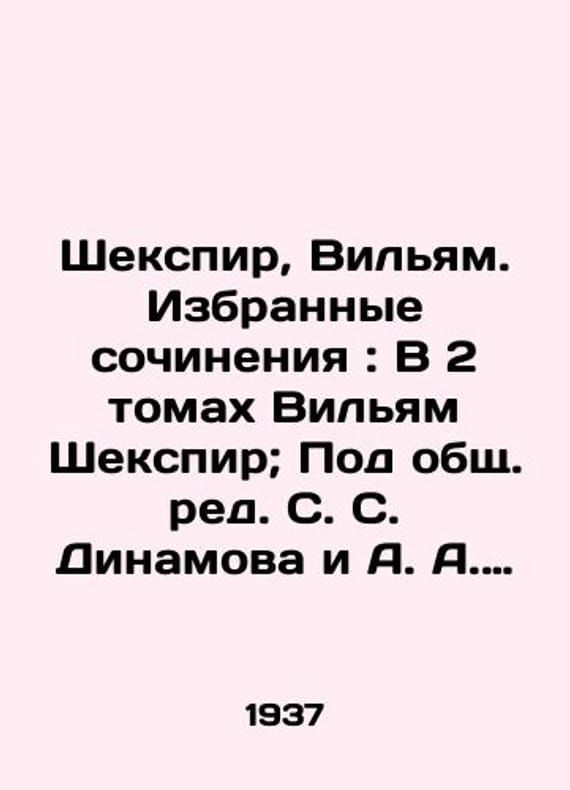 "Shakespeare, William. Selected Works: In 2 Volumes William Shakespeare; Edited by S. S. Dynamov and A. A. Smirnov; Entered by T. A. Rokotov. Moscow, Leningrad: Academia, 1937-1938 MCMXXXVII. Volume 2: 26x19 see./Shekspir, Vilyam. Izbrannye sochineniya: V 2 tomakh Vilyam Shekspir; Pod obshch. red. S. S. Dinamova i A. A. Smirnova; Vstup. statya T. A. Rokotova. Moskva, Leningrad: Academia, 1937-1938 MCMXXXVII. 2 t.: 26x19 sm. Shakespeare, William. Selected Works: In 2 Volumes William Shakespeare; Edited by S. S. Dynamov and A. A. Smirnov; Entered by T. A. Rokotov. Moscow, Leningrad: Academia, 1937-1938 MCMXXXVII.We have thousands of titles and often several copies of each title may be available. Please feel free to contact us for a detailed description of the copies available. SKUbd-64577ca36e3c1b85."