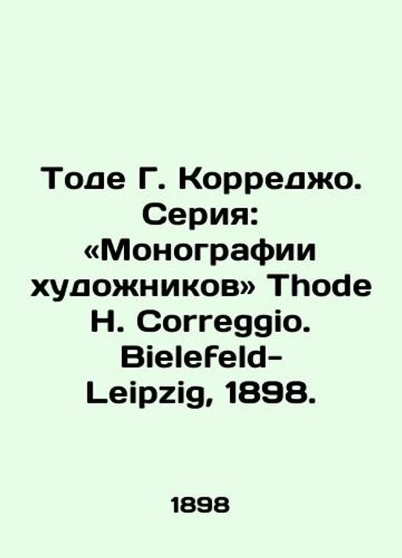 Thode H. Correggio. Series: Monographs by Artists. Thode H. Correggio. Bielefeld-Leipzig, 1898./Tode G. Korredzho. Seriya: «Monografii khudozhnikov Thode H. Correggio. Bielefeld-Leipzig, 1898. Correggio von Henry Thode. In German by Tode G. Correggio. Series: Monographs by Artists. Issue 30. Bielefeld-Leipzig: Verlag von Velhagen & Klasing, 1898.We have thousands of titles and often several copies of each title may be available. Please feel free to contact us for a detailed description of the copies available. SKUbd-64594440ff0b80db.