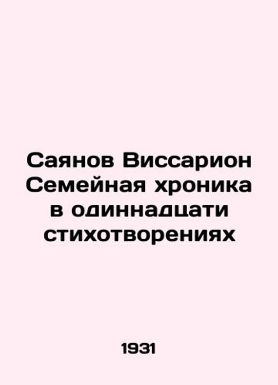 Sayanov Vissarion Family Chronicle in Eleven Poems/Sayanov Vissarion Semeynaya khronika v odinnadtsati stikhotvoreniyakh L.: Publishing House of Writers in Leningrad, 1931.We have thousands of titles and often several copies of each title may be available. Please feel free to contact us for a detailed description of the copies available. SKUbd-64d26e126f1ccd7c.