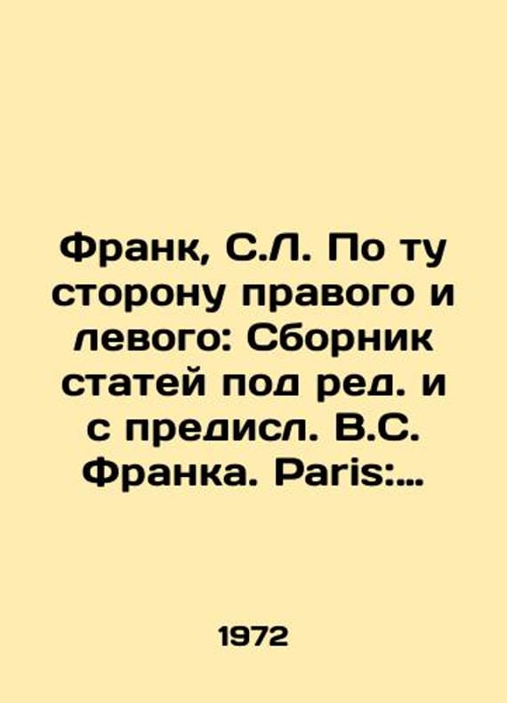 "Frank, C.L. Beyond Right and Left: A Compilation of Articles Edited and Prepared by V.C. Frank. Paris: Ymca Press, 1972/Frank, C.L. Po tu storonu pravogo i levogo: Sbornik statey pod red. i s predisl. V.C. Franka. Paris: Ymca Press, 1972. 241, 2 s.; 18,5x13,5 sm. Frank, C.L. Beyond Right and Left: A Compilation of Articles Edited and Prepared by V.C. Frank. Paris: Ymca Press, 1972. We have thousands of titles and often several copies of each title may be available. Please feel free to contact us for a detailed description of the copies available. SKUbd-6595cf289bd3e949."