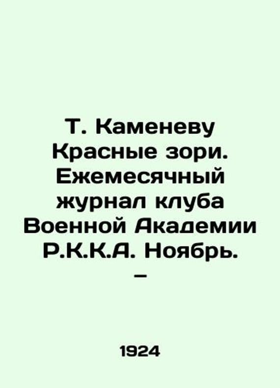 T. Kamenev Krasnye Zori. The monthly magazine of the club of the Military Academy of R.K.K.A. November./T. Kamenevu Krasnye zori. Ezhemesyachnyy zhurnal kluba Voennoy Akademii R.K.K.A. Noyabr. T. Kamenev Krasnye Zori. Monthly Journal of the Club of the R.K.K.A. Military Academy November. We have thousands of titles and often several copies of each title may be available. Please feel free to contact us for a detailed description of the copies available. SKUbd-65a0da01649b5eb1.