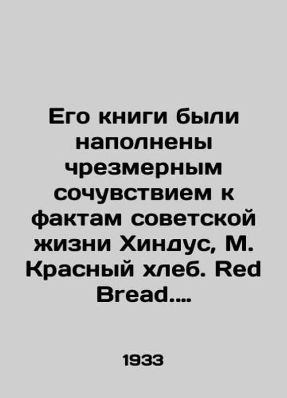 His books were filled with excessive sympathy for the facts of Soviet life. Hindus, M. Red Bread. New York: Jonathan Cape & Harrison Smith, 19/Ego knigi byli napolneny chrezmernym sochuvstviem k faktam sovetskoy zhizni Khindus, M. Krasnyy khleb. Red Bread. Na angl. yaz.. Nyu-York: Jonathan Cape & Harrison Smith, 19 His books were filled with excessive sympathy for the facts of Soviet life. Hindus, M. Red Bread. New York: Jonathan Cape & Harrison Smith, 1933.. SKUbd-65a9aa33483b5df0.We have thousands of titles and often several copies of each title may be available. Please feel free to contact us for a detailed description of the copies available. The delivery of this book might be delayed beyond the usual time due to extended processing and preparation before shipment, and faster shipping options are not offered. Please inform us if you need the order by a certain date or have a deadline.SKUbd-65a9aa33483b5df0