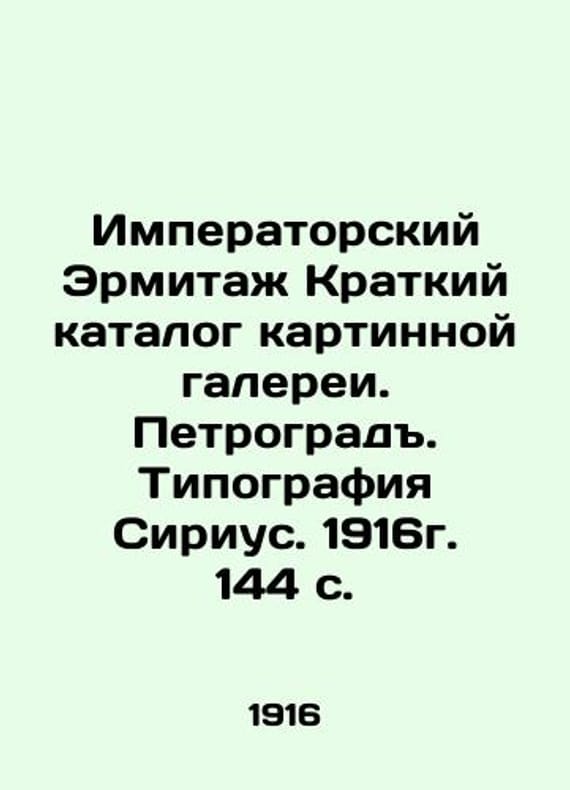 Imperial Hermitage Short catalogue of the picture gallery. Petrograd. Sirius Printing House. 1916. 144 p./Imperatorskiy Ermitazh Kratkiy katalog kartinnoy galerei. Petrograd. Tipografiya Sirius. 1916g. 144 s. Imperial Hermitage Short catalogue of the picture gallery. Petrograd. Sirius Printing House. 1916. 144We have thousands of titles and often several copies of each title may be available. Please feel free to contact us for a detailed description of the copies available. SKUbd-66f74b9740ef8cb3.