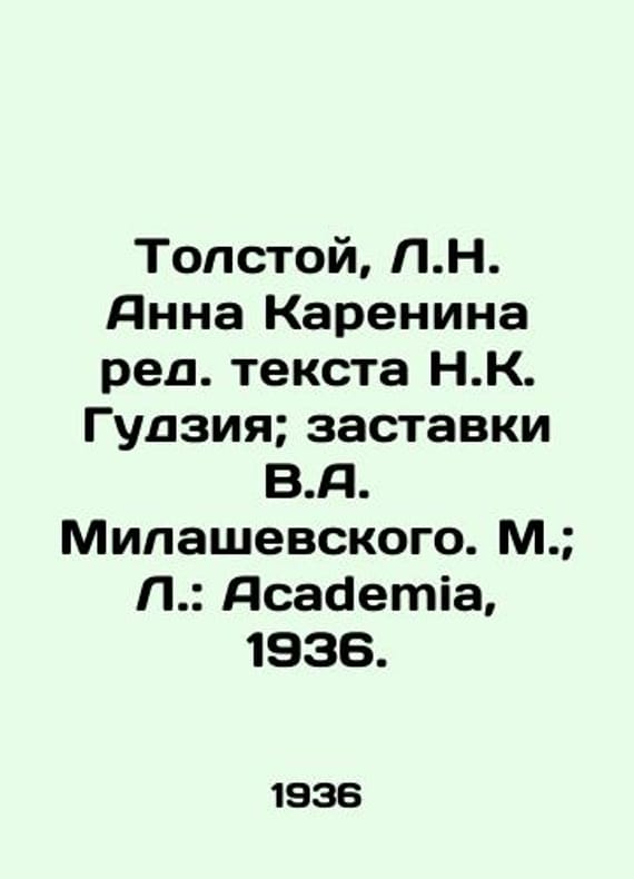 "Tolstoy, L. N. Anna Karenina, ed. Text by N. K. Gudziya; screensaver by V.A. Milashevsky. M.; L.: Academia, 1936./Tolstoy, L.N. Anna Karenina red. teksta N.K. Gudziya; zastavki V.A. Milashevskogo. M.; L.: Academia, 1936. Tolstoy, L. N. Anna Karenina, ed. Text by N. K. Gudziya; screensaver by V.A. Milashevsky. M.; L.: Academia, 1936.We have thousands of titles and often several copies of each title may be available. Please feel free to contact us for a detailed description of the copies available. SKUbd-66fb963a95a2943d."