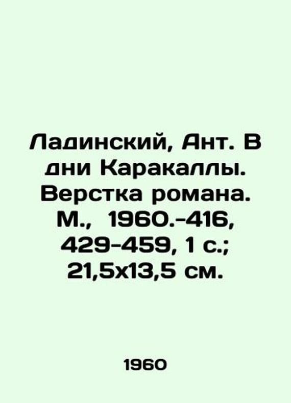 "Ladinsky, Ante. In the days of Karakalla. The layout of the novel. Moscow, 1960-416, 429-459, 1 p.; 21,5x13,5 sm./Ladinskiy, Ant. V dni Karakally. Verstka romana. M., 1960.-416, 429-459, 1 s.; 21,5x13,5 sm. Ladinsky, Ante. In the days of Karakalla. The layout of the novel. Moscow, 1960-416, 429-459, 1 p.; 21,5x13,5 sm. We have thousands of titles and often several copies of each title may be available. Please feel free to contact us for a detailed description of the copies available. SKUbd-692294509c40aae7."