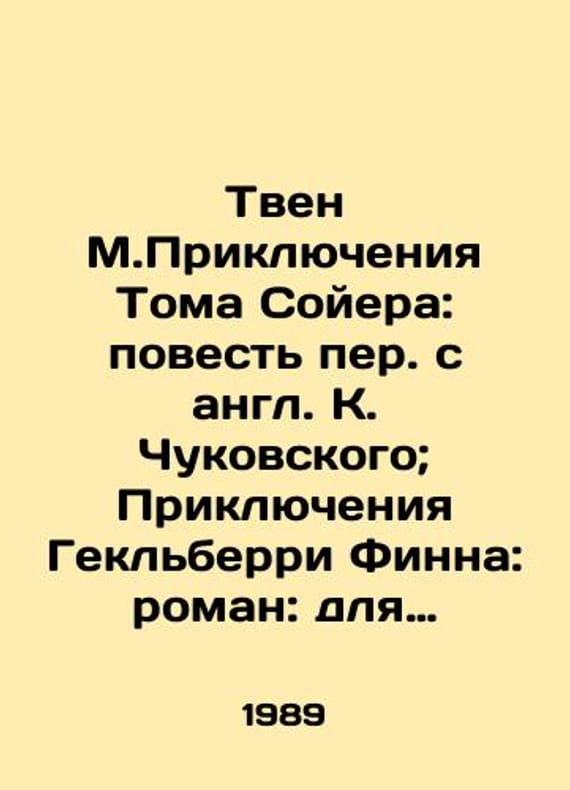 "Twain M. The Adventures of Tom Sawyer: A Tale Translated from English by K. Chukovsky; The Adventures of Huckleberry Finn: A Novel for Middle School Age by Mark Twain; Translated from English by N. Daruzes; Translated from English by T. Lanina; Drawing by G. Fitingof Text-Moscow: Childrens Literature, 1989.-462, 1 p./Tven M.Priklyucheniya Toma Soyera: povest per. s angl. K. Chukovskogo; Priklyucheniya Geklberri Finna: roman: dlya srednego shkolnogo vozrasta Mark Tven; per. s angl. N. Daruzes; poslesl. T. Laninoy; ris. G. Fitingofa Tekst.-Moskva: Detskaya literatura, 1989.-462, 1 s. (Illustration-G. Fitingof) Twain M. The Adventures of Tom Sawyer: A Tale Translated from English by K. Chukovsky; The Adventures of Huckleberry Finn: A Novel for Middle School Age by Mark Twain; Translated from English by N. Daruzes; Translated by T. Lanina; Fig. G. Fitingof Text-Moscow: Childrens Literature, 1989.-462, 1 We have thousands of titles and often several copies of each title may be available. Please feel free to contact us for a detailed description of the copies available. SKUbd-ed39cd4eb879d076."