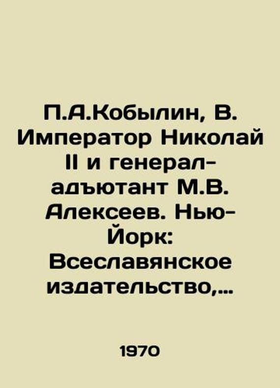 A.Kobylin, V. Emperor Nikolai II and Adjutant General M.V. Alexeev. New York: All-Slavonic Publishing House, 1970. 440, 2 p., 23.2 - 15.4 sm./A.Kobylin, V. Imperator Nikolay II i general-adyutant M.V. Alekseev. Nyu-York: Vseslavyanskoe izdatelstvo, 1970. 440, 2 s., il. 23,2-15,4 sm. A.Kobylin, V. Emperor Nikolai II and Adjutant General M.V. Alexeev. New York: All-Slavonic Publishing House, 1970. 440, 2 p., 23.2 - 15.4 sm. We have thousands of titles and often several copies of each title may be available. Please feel free to contact us for a detailed description of the copies available. SKUbd-6afca25147f8af68.