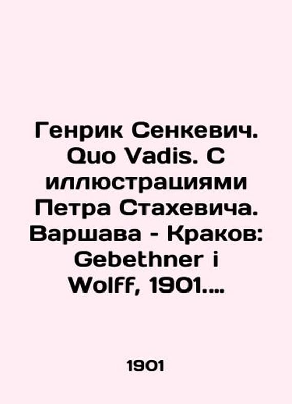 Henryk Senkiewicz. Quo Vadis. With illustrations by Piotr Stachewicz. Warsaw and Krakow: Gebethner i Wolff, 1901. Second Edition. 218 p./Genrik Senkevich. Quo Vadis. S illyustratsiyami Petra Stakhevicha. Varshava Krakov: Gebethner i Wolff, 1901. Vtoroe izdanie. 218 str. Henryk Senkiewicz. Quo Vadis. With illustrations by Piotr Stachewicz. Warsaw and Krakow: Gebethner i Wolff, 1901. Second Edition. 218We have thousands of titles and often several copies of each title may be available. Please feel free to contact us for a detailed description of the copies available. SKUbd-c903290c9bc8d83.