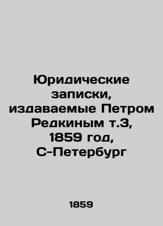 Legal memoranda issued by Peter Redkin vol. 3, 1859, S-Petersburg/Yuridicheskie zapiski, izdavaemye Petrom Redkinym t.3, 1859 god, S-Peterburg Legal memoranda issued by Peter Redkin vol. 3, 1859, S-Petersburg 1859.We have thousands of titles and often several copies of each title may be available. Please feel free to contact us for a detailed description of the copies available. SKUbd-6b0c37c501296ae5.