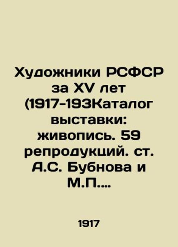 Artists of the RSFSR for XV Years (1917-193Exhibition Catalogue: Painting. 59 reproductions by A.S. Bubnov and M. Arkadyev./Khudozhniki RSFSR za XV let (1917-193Katalog vystavki: zhivopis. 59 reproduktsiy. st. A.S. Bubnova i M. Arkadeva. Artists of the RSFSR for XV years (1917-193Exhibition catalogue: painting. 59 reproductions, art. A.S. Bubnov and M. Arkadyeva. Moscow: Peoples Commissariat of the RSFSR, 1933-XVI, 2, 48 p., 29 liters. 17.5x13.5 sm. We have thousands of titles and often several copies of each title may be available. Please feel free to contact us for a detailed description of the copies available. SKUbd-6b24e4785d1f6e8b.