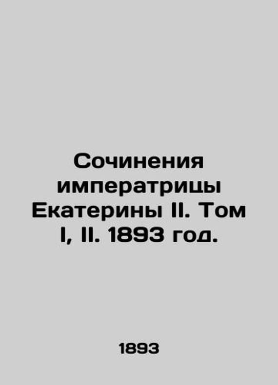 Works of Empress Catherine II. Volume I, II. 1893./Sochineniya imperatritsy Ekateriny II. Tom I, II. 1893 god. Editorial and Notes by V.F. Solntsev. Dramatic Works. Monthly Supplement to the magazine Sever for 1893 (April, May). St. Petersburg, 1893. Catherine II Alexeyevna, Catherine the Great, born Sophia Frederica Anhalt-Cerbstsky, Empress and Empress of Russia (1762-1796). Catherine II was fascinated by literary activity, collected masterpieces of painting, and corresponded with French educators.We have thousands of titles and often several copies of each title may be available. Please feel free to contact us for a detailed description of the copies available. The delivery of this book might be delayed beyond the usual timeframe due to extended processing and preparation before shipment, and faster shipping options are not offered. Please inform us if you need the order by a certain date or have a deadline.SKUbd-6c27e9e177389338