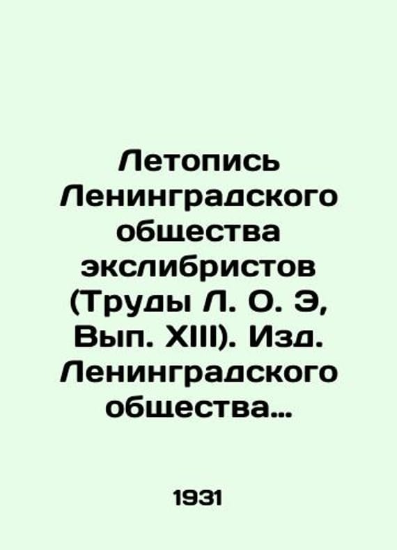 Chronicle of the Leningrad Exlimist Society (Proceedings of the Leningrad Exlimist Society, 1931 -)./Letopis Leningradskogo obshchestva ekslibristov (Trudy L. O. E, Vyp. XIII). Izd. Leningradskogo obshchestva ekslibristov. Leningrad, 1931 g. - Chronicle of the Leningrad Exlimist Society (Proceedings of the Leningrad Exlimist Society, 1931 -). We have thousands of titles and often several copies of each title may be available. Please feel free to contact us for a detailed description of the copies available. SKUbd-6c6cb7206a090a3b.