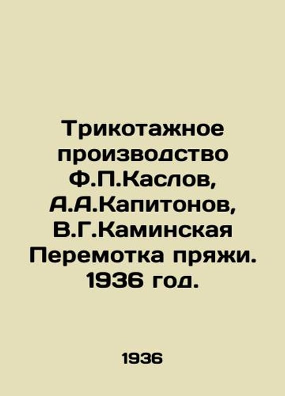 Knitted production by F.Kaslov, A.A.Kapitonov, V.G.Kaminskaya Yarn Rewind. 1936./Trikotazhnoe proizvodstvo F.Kaslov, A.A.Kapitonov, V.G.Kaminskaya Peremotka pryazhi. 1936 god. GIZLEGPROM. 1936. Circulation 7.175. The book is designed for high-tech circles and the school of masters of socialist production. We have thousands of titles and often several copies of each title may be available. Please feel free to contact us for a detailed description of the copies available. SKUbd-6d37049117767099.