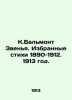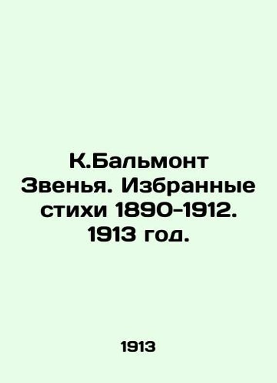 K. Balmont Ring. Selected poems 1890-1912. 1913./K.Balmont Zvenya. Izbrannye stikhi 1890-1912. 1913 god. Scorpion Book Publishing House. Moscow. 1913. An anthology of Balmonts selected poems, created between 1890 and 1912. The collection includes works from the poets various books, such as Under the Northern Sky (1894), In the Abyss (1895), Burning Buildings (1900), Lets Be Like the Sun (1903) and others. We have thousands of titles and often several copies of each title may be available. Please feel free to contact us for a detailed description of the copies available. SKUbd-6d7e1e6bd407a81.
