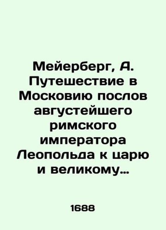 Meyerberg, A. Journey to Moscow by the ambassadors of the august Roman Emperor Leopold to the Tsar and Grand Duke Alexei Mihalowicz. Voyage in Moscow dun ambassador, conseiller de la Chambre Imperiale, envoye par lempereur Leopold au czar Alexis Mihalowics Grand Duc de Moscovie/Meyerberg, A. Puteshestvie v Moskoviyu poslov avgusteyshego rimskogo imperatora Leopolda k tsaryu i velikomu knyazyu Alekseyu Mikhaylovichu. Voyage en Moscovie dun ambassadeur, conseiller de la Chambre Imperiale, envoye par lempereur Leopold au czar Alexis Mihalowics Grand Duc de Moscovie. Na fr. yaz. Leyden: Friderik Harring, 16 Leiden: Friederik Harring, 1688. 2, 381 p. 15.5 - 9 see Meyerberg, A. Journey to Moscow by the ambassadors of the august Roman Emperor Leopold to the Tsar and Grand Duke Alexey Mihalowicz. Voyage in Moscow dun ambassador, conseiller de la Chambre Imperiale, envoye par lempereur Leopold au czar Alexis Mihalowics Grand Duc de Moscovie.We have thousands of titles and often several copies of each title may be available. Please feel free to contact us for a detailed description of the copies available. SKUbd-6d8ab6ab6b28aff8.