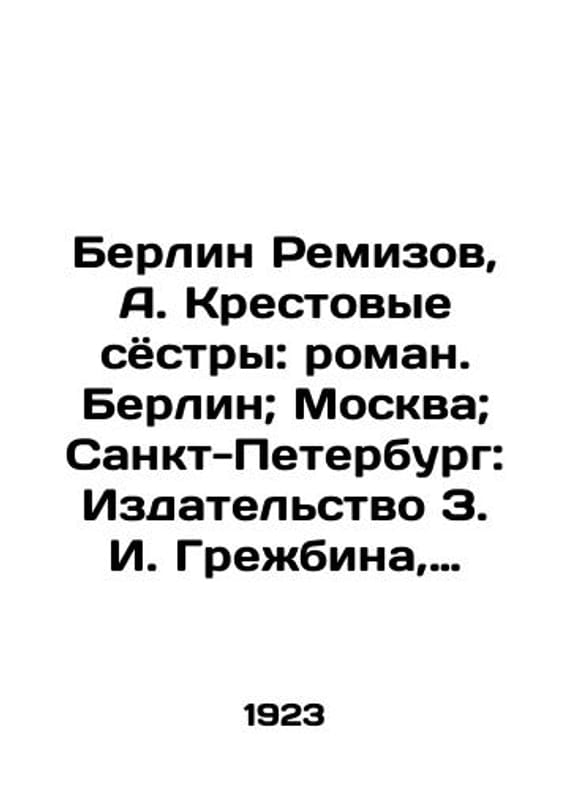 "Berlin Remizov, A. The Cross Sisters: A Novel. Berlin; Moscow; Saint Petersburg: Publishing House of Z. I. Grezhbin, 1923.-176 p./Berlin Remizov, A. Krestovye syostry: roman. Berlin; Moskva; Sankt-Peterburg: Izdatelstvo Z. I. Grezhbina, 1923.-176 s. Berlin Remizov, A. The Cross Sisters: A Novel. Berlin; Moscow; Saint Petersburg: Publishing House of Z. I. Grezhbin, 1923.-176 We have thousands of titles and often several copies of each title may be available. Please feel free to contact us for a detailed description of the copies available. SKUbd-6df589bee3e1259a."