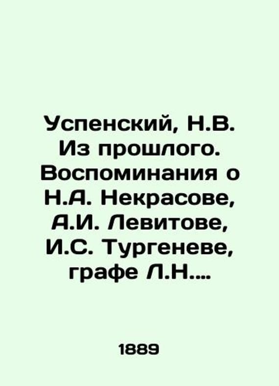 Uspensky, N.V. From the Past. Memories of N.A. Nekrasov, A.I. Levitov, I.S. Turgenev, Count L.N. Tolstoy, G.I. Uspensky, D.V. Grigorovich, N.G. Pomyalovsky, and V.A. Sleptsov. With the addition of memories of F.M. Dostoyevsky (at hard labor), M.E. Shchedrin (Saltykov) and M.Y. Lermontov (Count Rastopchina and Viskovatova)./Uspenskiy, N.V. Iz proshlogo. Vospominaniya o N.A. Nekrasove, A.I. Levitove, I.S. Turgeneve, grafe L.N. Tolstom, G.I. Uspenskom, D.V. Grigoroviche, N.G. Pomyalovskom, i V.A. Sleptsove. S prisovokupleniem vospominaniya o F.M. Dostoevskom (na katorge), M.E. Shchedrine (Saltykove) i M.Yu. Lermontove (graf. Rastopchinoy i Viskovatova). Uspensky, N.V. From the Past. Memories of N.A. Nekrasov, A.I. Levitov, I.S. Turgenev, Count L.N. Tolstoy, G.I. Uspensky, D.V. Grigorovich, N.G. Pomyalovsky, and V.A. Sleptsov. With the addition of memories of F.M. Dostoyevsky (at hard labor), M.E. Shchedrin (Saltykov) and M.Yu. Lermontov (Count Rastopchina and Viskovatova). We have thousands of titles and often several copies of each title may be available. Please feel free to contact us for a detailed description of the copies available. SKUbd-6e012d2e5fa1578d.