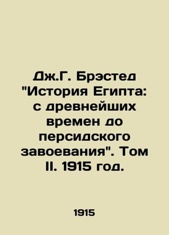J.G. Brasteds History of Egypt: From Ancient Times to the Persian Conquest. Volume II. 1915. /Dzh.G. Brested Istoriya Egipta: s drevneyshikh vremen do persidskogo zavoevaniya. Tom II. 1915 god. The classic work on the history of Ancient Egypt by the famous American archaeologist and Egyptologist James Henry Breasted (1865-1935) was translated by a famous Russian Egyptologist, Professor Vladimir Mikhailovich Vikentiev (1882-1960).We have thousands of titles and often several copies of each title may be available. Please feel free to contact us for a detailed description of the copies available. The delivery of this book might be delayed beyond the usual timeframe due to extended processing and preparation before shipment, and faster shipping options are not offered. Please inform us if you need the order by a certain date or have a deadline.SKUbd-6e9a9f175a3d33db