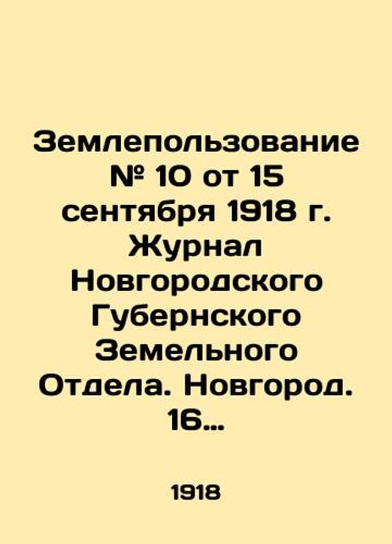 "Land use # 10 of September 15, 1918, Journal of Novgorod Province Land Department. Novgorod. 16 p.; 34x25 sm./Zemlepolzovanie # 10 ot 15 sentyabrya 1918 g. Zhurnal Novgorodskogo Gubernskogo Zemelnogo Otdela. Novgorod. 16 s.; 34x25 sm. Land use # 10 of September 15, 1918, Journal of Novgorod Province Land Department. Novgorod. 16.We have thousands of titles and often several copies of each title may be available. Please feel free to contact us for a detailed description of the copies available. SKUbd-6f0cf554af26d06e."