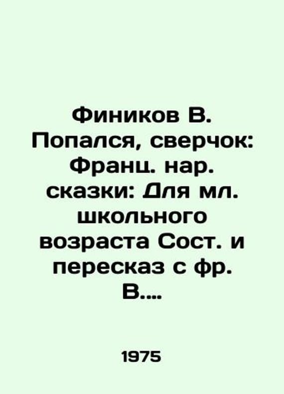 "Dinikov V. Caught, cricket: French fairy tales: For junior school age, composed and retelling from V. Finikov; Fig. T. Shishmareva./Finikov V. Popalsya, sverchok: Frants. nar. skazki: Dlya ml. shkolnogo vozrasta Sost. i pereskaz s fr. V. Finikova; Ris. T. Shishmarevoy. (illustrations by T.Shishmarev) V. Finikov, cricket: French fairy tales: For younger school-age children. Composed and retelling from F.V. Finikov; Figure T. Shishmareva-Moscow: Det. lit., 1975-191 p.:. We have thousands of titles and often several copies of each title may be available. Please feel free to contact us for a detailed description of the copies available. SKUbd-6f2713fba0733d98."