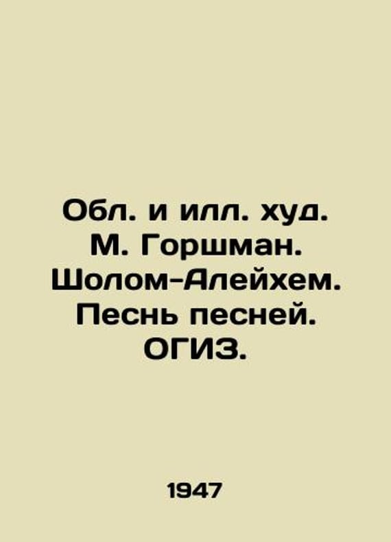 Regional and S.Pb.bad. M. Gorshman. Sholom-Aleichem. Song of Song. OGIZ./Obl. i S.Pb.khud. M. Gorshman. Sholom-Aleykhem. Pesn pesney. OGIZ. The Region and S.Pb.hud. M. Gorshman. Sholom-Aleichem. Song of Song. OGIZ. Moscow: 1947. 131 p.We have thousands of titles and often several copies of each title may be available. Please feel free to contact us for a detailed description of the copies available. SKUbd-6f4c3f071472bb82.