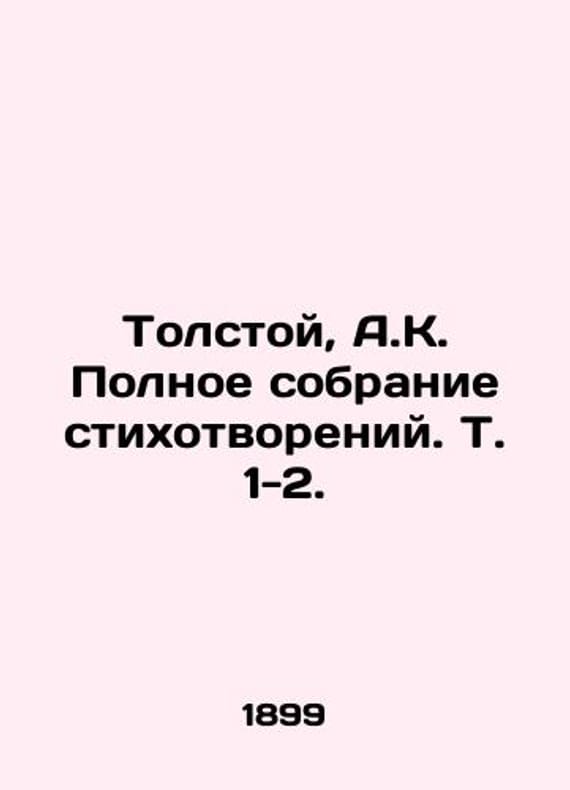 Tolstoy, A.K. Complete collection of poems. Vol. 1-2./Tolstoy, A.K. Polnoe sobranie stikhotvoreniy. T. 1-2. Tolstoy, A.K. Complete collection of poems. Vol. 1-2. St. Petersburg:, 1899. We have thousands of titles and often several copies of each title may be available. Please feel free to contact us for a detailed description of the copies available. SKUbd-6f505258cdb00bc4.