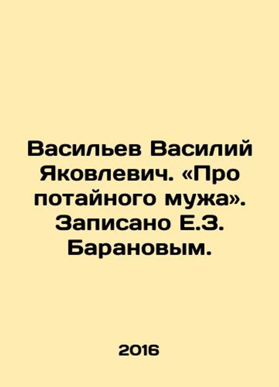 Vasiliev Vasily Yakovlevich. About the secret husband./Vasilev Vasiliy Yakovlevich. «Pro potaynogo muzha. Zapisano E.Z. Baranovym. It was written in 1926 by Vasily Yakovlevich Vasilyev, a peasant in Smolensk province, a newspaper salesman, and, at times, a shy, semi-literate 55-year-old. We have thousands of titles and often several copies of each title may be available. Please feel free to contact us for a detailed description of the copies available. SKUbd-6fe33e8b528e95c7.