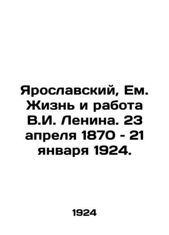 Yaroslavsky, The Life and Work of V.I. Lenin. April 23, 1870 to January 21, 1924./Yaroslavskiy, Em. Zhizn i rabota V.I. Lenina. 23 aprelya 1870 21 yanvarya 1924. Yaroslavsky, The Life and Work of V.I. Lenin. April 23, 1870 to January 21, 1924. Edition 3. Moscow: State Publishing House, 1924.We have thousands of titles and often several copies of each title may be available. Please feel free to contact us for a detailed description of the copies available. SKUbd-712aca87c918e3bd.