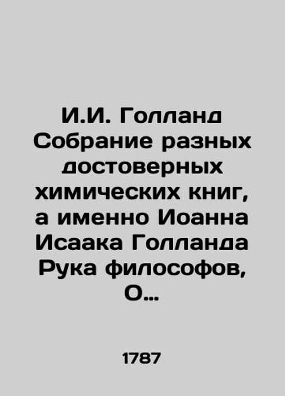 I.I. Holland Collection of Various Authoritative Chemical Books, namely John Isaac Holland The Philosophers Hand, On Saturn, On Plants, Minerals, Cabal, and On the Philosophical Stone/I.I. Golland Sobranie raznykh dostovernykh khimicheskikh knig, a imenno Ioanna Isaaka Gollanda Ruka filosofov, O Saturne, O rasteniyakh, Mineralakh, Kabala i O kamne filosoficheskom John Isaac Holland and his father Isaac Holland were the first Dutch alchemists, and their operations were highly valued by Paracels, Boyle, and Kunkel. In practical chemistry, they followed Gebers traditions, and their alchemical experiments are the simplest and clearest in a vast range of hermetic literature. We have thousands of titles and often several copies of each title may be available. Please feel free to contact us for a detailed description of the copies available. SKUbd-718f4c370cb15057.