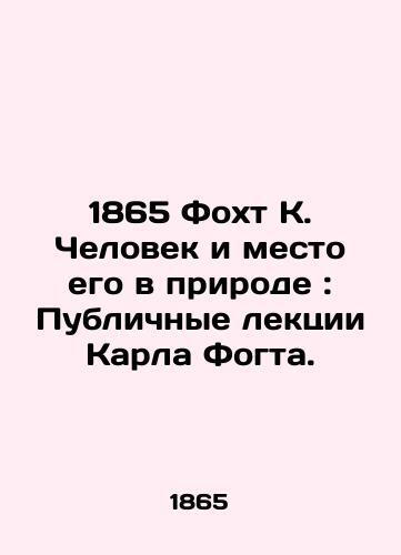 1865 Vogt K. The Man and His Place in Nature: Karl Vogts Public Lectures./1865 Fokht K. Chelovek i mesto ego v prirode: Publichnye lektsii Karla Fogta. Vol. 1.-2nd ed. St. Petersburg: A. Gaideburov, 1866.4, IV, 275 We have thousands of titles and often several copies of each title may be available. Please feel free to contact us for a detailed description of the copies available. SKUbd-71aa39645e1dc64e.