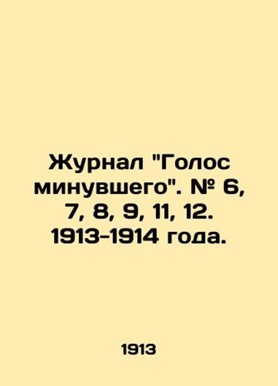 Journal Voice of the Past. # 6, 7, 8, 9, 11, 12. 1913-1914./Zhurnal Golos minuvshego. # 6, 7, 8, 9, 11, 12. 1913-1914 goda. 1. Voice of the Past. # 6, June. Journal of the History and History of Literature, published with the constant participation of A.K. Jivelegov, S. Melgunov, N. Sakulin, and V.I. Semevsky. Typography of T-va I.D. Sytin. Moscow, 1913. 2. Voice of the Past. # 7, July. Journal of History and History of Literature, published with the constant participation of A.K. Jivelegov, S. Melgunov, N. Sakulin, and V.I. Semevsky. Typography of T-va I.D. Sytin. Moscow, 1913. 3. Voice of the Past. # 8, August. Journal of History and History of Literature, published with the constant participation of A.K. Jivelegov, S. Melgunov, N. Sakulin, and.We have thousands of titles and often several copies of each title may be available. Please feel free to contact us for a detailed description of the copies available. The delivery of this book might be delayed beyond the usual timeframe due to extended processing and preparation before shipment, and faster shipping options are not offered. Please inform us if you need the order by a certain date or have a deadline.SKUbd-72d786fc88de7ede