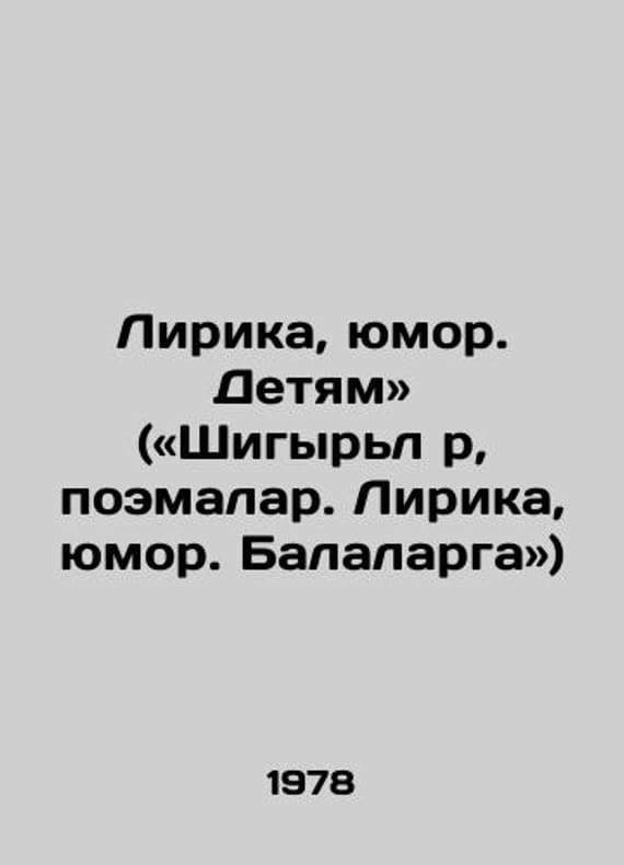 Lyrics, Humor. To the Children (i.e. Shigyrlar, Poem. Lyrics, Humor. Balalarga) /Lirika, yumor. Detyam (Shigyrla, poemalar. Lirika, yumor. Balalarga) (in Tatar) Kazan: Tatar Book Publishing House, 1978, 560 We have thousands of titles and often several copies of each title may be available. Please feel free to contact us for a detailed description of the copies available. SKUbd-734c64bb9429a265.