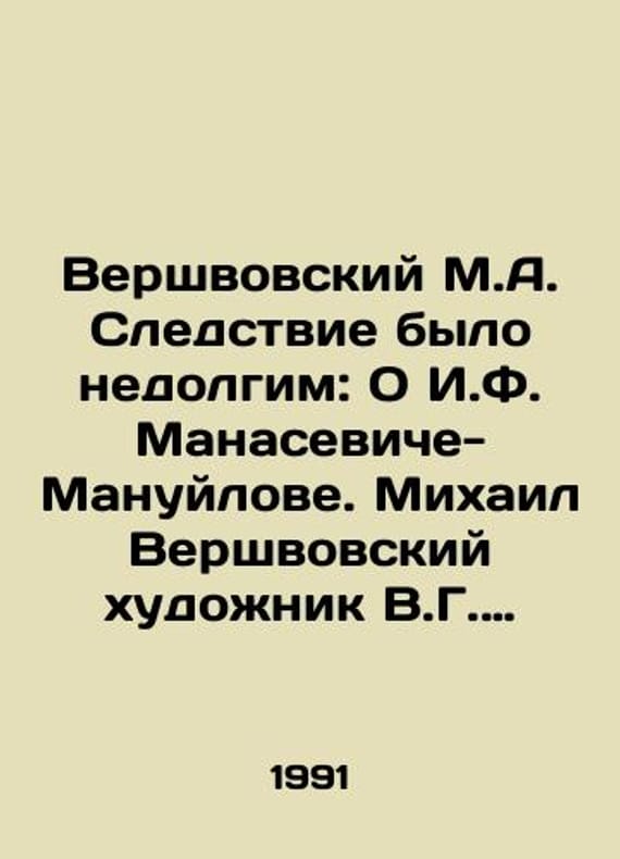 Vershvovsky M.A. The investigation was short-lived: About I.F. Manasevich-Manuilov. Mikhail Vershvovsky the artist V.G. Traugott./Vershvovskiy M.A. Sledstvie bylo nedolgim: O I.F. Manaseviche-Manuylove. Mikhail Vershvovskiy khudozhnik V.G. Traugot. Vershvovsky M.A. The investigation was short-lived: About I.F. Manasevich-Manuilov. Mikhail Vershvovsky the artist V.G. Traugott. We have thousands of titles and often several copies of each title may be available. Please feel free to contact us for a detailed description of the copies available. SKUbd-73623fba96440e1.