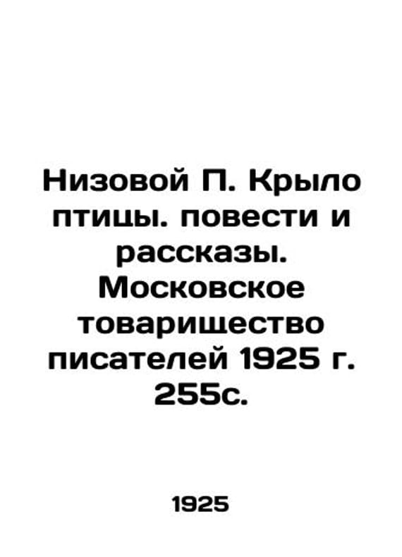 The Bottom The Bird Wing. Stories and Stories. Moscow Writers Association, 1925 255s. /Nizovoy Krylo ptitsy. povesti i rasskazy. Moskovskoe tovarishchestvo pisateley 1925 g. 255s. The Bottom The Bird Wing. Stories and Stories. Moscow Writers Association, 1925 255s.We have thousands of titles and often several copies of each title may be available. Please feel free to contact us for a detailed description of the copies available. SKUbd-744faec0dcb15ced.