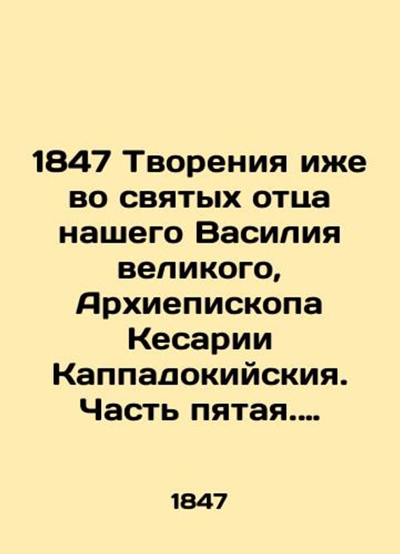 1847 Creations also in the saints of our father Basil the Great, Archbishop of Caesarea of Cappadocia. Part five. Additions to the publication of the creations of the saints./1847 Tvoreniya izhe vo svyatykh ottsa nashego Vasiliya velikogo, Arkhiepiskopa Kesarii Kappadokiyskiya. Chast pyataya. Pribavleniya k izdaniyu tvoreniy svyatykh ottsev. Creations of the Holy Fathers, in Russian translation, published at the Moscow Theological Academy. Volume 9. M. In the printing house of Augustus Semyon. 1847. 208 We have thousands of titles and often several copies of each title may be available. Please feel free to contact us for a detailed description of the copies available. SKUbd-74e3dd611e9e1eee.