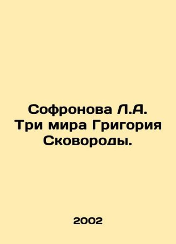 Sofronova L.A. The Three Worlds of Grigory Skovoroda./Sofronova L.A. Tri mira Grigoriya Skovorody. M. Indrik 2002 464We have thousands of titles and often several copies of each title may be available. Please feel free to contact us for a detailed description of the copies available. SKUbd-7557043bb3f5e8d0.