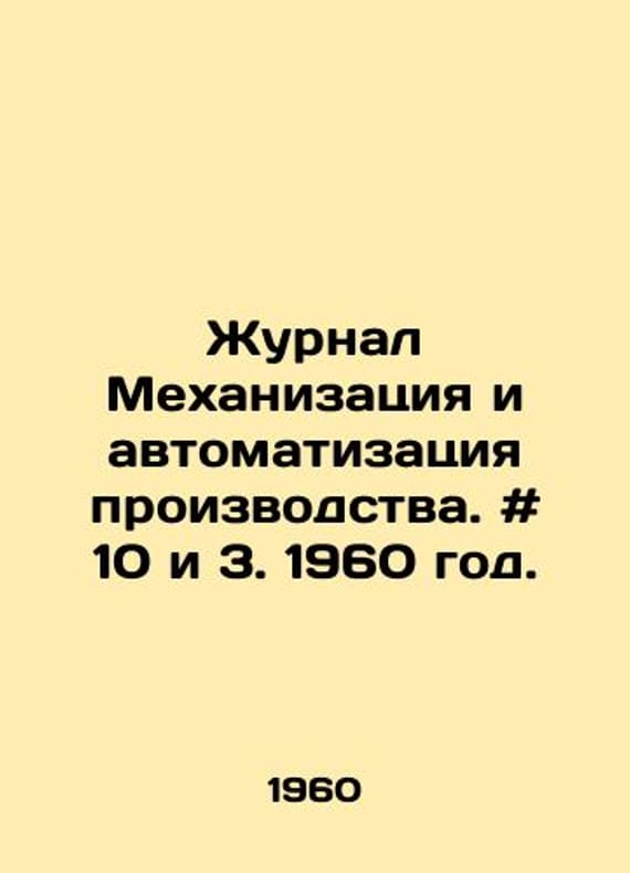 Journal Mechanization and Manufacturing Automation. # 10 and 3. 1960./Zhurnal Mekhanizatsiya i avtomatizatsiya proizvodstva. # 10 i 3. 1960 god. Publishing House Moskovskaya Pravda. Scientific and Technical Journal. Moscow, 1960. Mechanization and Automation of Production, a monthly scientific and technical journal, an organ of the Ministry of Machine Tool and Machine Building Industry of the USSR. Published in Moscow since 1947. We have thousands of titles and often several copies of each title may be available. Please feel free to contact us for a detailed description of the copies available. SKUbd-10b49a905deae7ca.