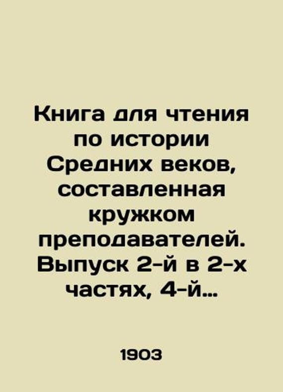 Book for reading on the history of the Middle Ages, compiled by a group of teachers. Issue 2 in two parts, the fourth and last. 1903-1914./Kniga dlya chteniya po istorii Srednikh vekov, sostavlennaya kruzhkom prepodavateley. Vypusk 2-y v 2-kh chastyakh, 4-y i posledniy. 1903-1914 goda. 1. Book for reading on the history of the Middle Ages compiled by a group of teachers. Edited by Professor G. Vinogradov. Awarded the Emperor Peter the Great Grand Prize. Second issue (first half). Edition 3. Typo-lithography of the Partnership I. N. Kushneryov and Co. Moscow, 1903. 2. Book for reading on the history of the Middle Ages compiled by a group of teachers. Edited by Professor Vinogradov. Awarded the Emperor Peter the Great Prize. Issue 2 (second half). Edition 3. Title-lithography of the Partnership I. N. Kushneryov and Co. Moscow, 1903. 3. Book for reading on the history of the Middle Ages compiled by a group of teachers. Edited by Professor Vinogradov. We have thousands of titles and often several copies of each title may be available. Please feel free to contact us for a detailed description of the copies available. SKUbd-76986614e789244e.