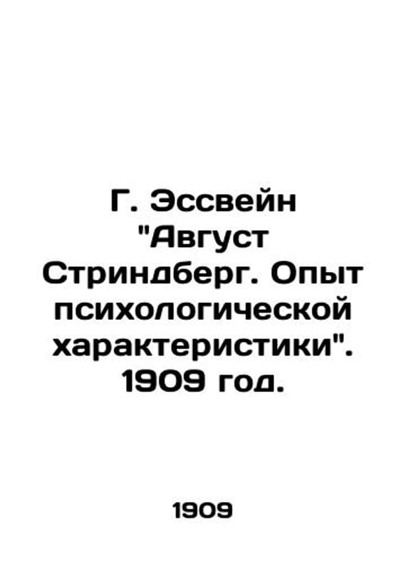 G. Esswein August Strindberg. Experience of psychological characterization. 1909./G. Essveyn Avgust Strindberg. Opyt psikhologicheskoy kharakteristiki. 1909 god. The author of the proposed brochure provides a purely psychological analysis of Strindberg. He takes all of his emotional drama, as well as his most vivid images and even the peculiarities of his style, out of one of the main features of his nature, out of the constantly simmering struggle between spirit and instincts, between the conscious and unconscious principle of his psyche. Strindberg Johan August (1849-1912) is a Swedish writer, playwright and publicist, representative of Swedish naturalism, the founder of modern Swedish literature and theatre. We have thousands of titles and often several copies of each title may be available. Please feel free to contact us for a detailed description of the copies available. SKUbd-7806b3b8ee9206ba.