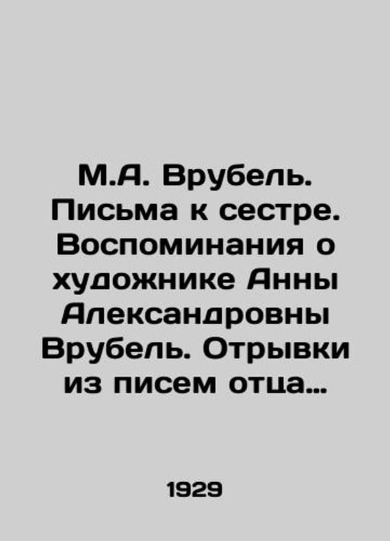 M.A. Vrubel. Letters to his sister. Memories of the artist Anna Aleksandrovna Vrubel. Excerpts from letters from the artists fathers introduction to art. A. Ivanov. (From the past of Russian art)./M.A. Vrubel. Pisma k sestre. Vospominaniya o khudozhnike Anny Aleksandrovny Vrubel. Otryvki iz pisem ottsa khudozhnika vstup. st. A. Ivanova. (Iz proshlogo russkogo iskusstva). M.A. Vrubel. Letters to her sister. Memories of the artist Anna Aleksandrovna Vrubel. Excerpts from letters from the artists fathers introduction, art. A. Ivanov. (From the past of Russian art).We have thousands of titles and often several copies of each title may be available. Please feel free to contact us for a detailed description of the copies available. SKUbd-78caa0295ef9507d.