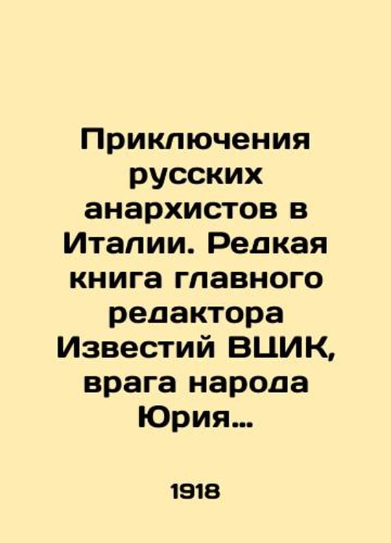 The Adventures of Russian Anarchists in Italy: A Rare Book by Yuri Mikhailovich Steklov, Editor-in-Chief of Izvestia, Enemy of the People (O.M. Nahamkes)/Priklyucheniya russkikh anarkhistov v Italii. Redkaya kniga glavnogo redaktora Izvestiy VTsIK, vraga naroda Yuriya Mikhaylovicha Steklova (O.M. Nakhamkes) Petrograd. Type. A. Beneke. 1918. 96 We have thousands of titles and often several copies of each title may be available. Please feel free to contact us for a detailed description of the copies available. SKUbd-78eca1c1ac20ab0b.