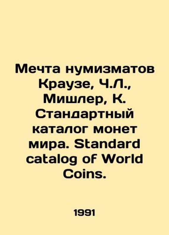 The dream of numismats Krause, Ch. L., Mishler, K. Standard catalogue of coins of the world. Standard catalog of World Coins./Mechta numizmatov Krauze, Ch.L., Mishler, K. Standartnyy katalog monet mira. Standard catalog of World Coins. The Dream of Numismatists Krause, Ch. L., Mishler, K. Standard catalog of World Coins. In English. In 2 Vol. 1-2. USA.: Krause Publications, 1991. Vol. 1: 1-1504 p., Vol. 2: 1505-3008. We have thousands of titles and often several copies of each title may be available. Please feel free to contact us for a detailed description of the copies available. SKUbd-7987917e05cd2312.