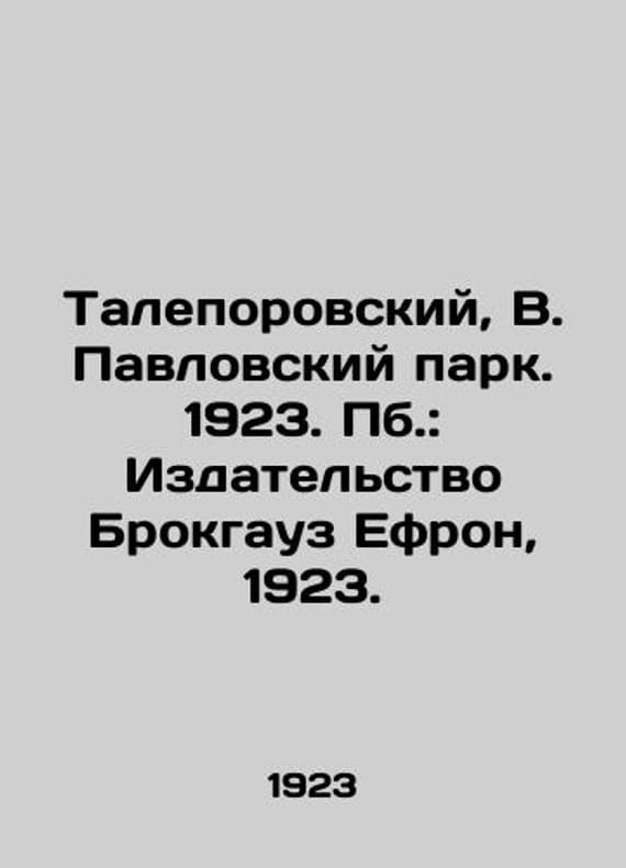 Taleporovsky, V. Pavlovsky Park. 1923. Pb.: Brockhaus Ephron Publishing House, 1923./Taleporovskiy, V. Pavlovskiy park. 1923. Pb.: Izdatelstvo Brokgauz Efron, 1923. Taleporovsky, V. Pavlovsky Park. 1923. Pb.: Brockhaus Ephron Publishing House, 1923.We have thousands of titles and often several copies of each title may be available. Please feel free to contact us for a detailed description of the copies available. SKUbd-79aab5ce2f7943ed.