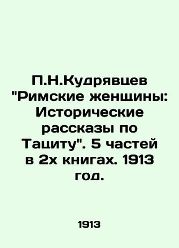 N. Kudryavtsev Roman Women: Tacitus Stories in History. 5 parts in 2 books. 1913./N.Kudryavtsev Rimskie zhenshchiny: Istoricheskie rasskazy po Tatsitu. 5 chastey v 2kh knigakh. 1913 god. Part III (Agrippina the Younger and Poppea Sabina) - 8 pages of illustrations. Part IV (Poppea Sabina and Octavia) - 6 pages of illustrations. Part V (Instead of an epilogue: Nero, the son of Agrippina) - 8 pages of illustrations. Kudryavtsev Pyotr Nikolaevich (1816-1858) is a Russian historian, literary critic and writer, professor at Moscow University, student, friend and successor of historian T.N. Granovsky.We have thousands of titles and often several copies of each title may be available. Please feel free to contact us for a detailed description of the copies available. The delivery of this book might be delayed beyond the usual timeframe due to extended processing and preparation before shipment, and faster shipping options are not offered. Please inform us if you need the order by a certain date or have a deadline.SKUbd-79fa88a6bf8bac56