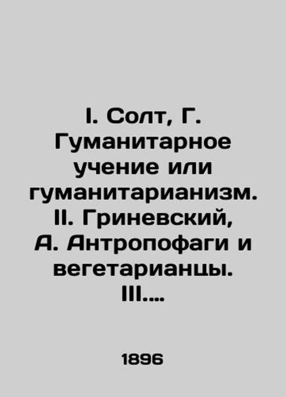 I. Salt, G. Humanitarianism or Humanitarianism. II. Grinevsky, A. Anthropophages and vegetarians. III. Vegetarianism, its thought and social significance, Op. M.S. IV. Salt, G. Meat or Fruit?/I. Solt, G. Gumanitarnoe uchenie ili gumanitarianizm. II. Grinevskiy, A. Antropofagi i vegetariantsy. III. Vegetarianstvo, ego mysl i obshchestvennoe znachenie soch. M.S. IV. Solt, G. Myaso ili plody? I. Salt, G. Humanitarian teachings or humanitarianism. II. Grinevsky, A. Anthropophages and vegetarians. III. Vegetarianism, its thought and social significance, Op. M.S. IV. Salt, G. Meat or fruit. We have thousands of titles and often several copies of each title may be available. Please feel free to contact us for a detailed description of the copies available. SKUbd-7b3e3aeb3a998637.