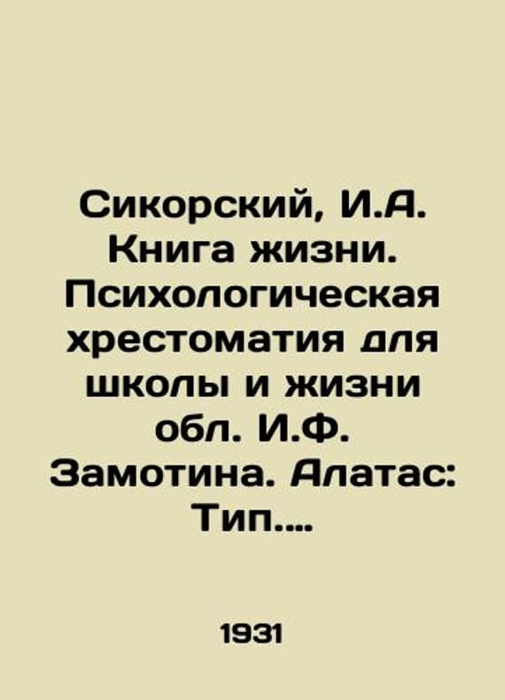 Sikorsky, I.A. The Book of Life. Psychological Literature for School and Life of I.F. Zamotin Region. Alatas: Type. Alatas in Churaevka, 1931./Sikorskiy, I.A. Kniga zhizni. Psikhologicheskaya khrestomatiya dlya shkoly i zhizni obl. I.F. Zamotina. Alatas: Tip. K-va Alatas v Churaevke, 1931. Sikorsky, I.A. The Book of Life. Psychological History for School and Life of I.F. Zamotin Region. Alatas: Type: K-va Alatas in Churaevka, 1931. XVI, 685, 3 p., p.We have thousands of titles and often several copies of each title may be available. Please feel free to contact us for a detailed description of the copies available. SKUbd-7b87fa2470dacd3b.