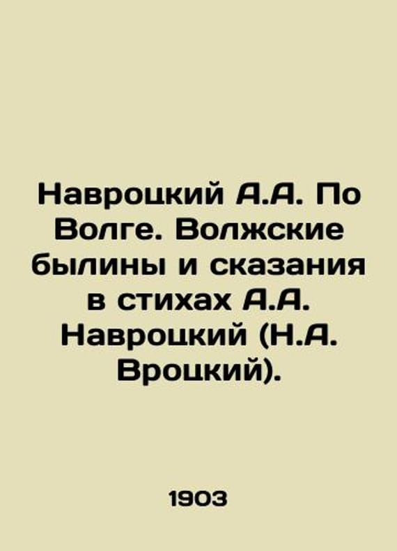 "Navrotsky A.A. On the Volga. Volga Bylines and Tales in Verses by A.A. Navrotsky (N.A. Wrotsky)./Navrotskiy A.A. Po Volge. Volzhskie byliny i skazaniya v stikhakh A.A. Navrotskiy (N.A. Vrotskiy). Navrotsky A.A. On the Volga. Volga Bylines and Tales in Verses by A.A. Navrotsky (N.A. Vrotsky). St. Petersburg: Type V. Bezobrazova and Ko, 1903. VI, 174 p., 1 l.; 18.7 - 13.8 sm. SKUbd-7bcb2cb1a4d1d47b.We have thousands of titles and often several copies of each title may be available. Please feel free to contact us for a detailed description of the copies available. The delivery of this book might be delayed beyond the usual time due to extended processing and preparation before shipment, and faster shipping options are not offered. Please inform us if you need the order by a certain date or have a deadline.SKUbd-7bcb2cb1a4d1d47b"