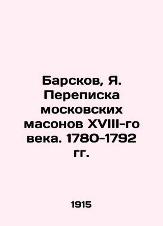 Barskov, Ya. Correspondence of Moscow Freemasons of the 18th century. 1780-1792./Barskov, Ya. Perepiska moskovskikh masonov XVIII-go veka. 1780-1792 gg. 1780-1792 Pg.: Publishing House of the Department of Russian Language and Literature of the Imperial Academy of Sciences, 1915. LXII, 2, 335, 7We have thousands of titles and often several copies of each title may be available. Please feel free to contact us for a detailed description of the copies available. SKUbd-7c26a1406fd3ac6b.