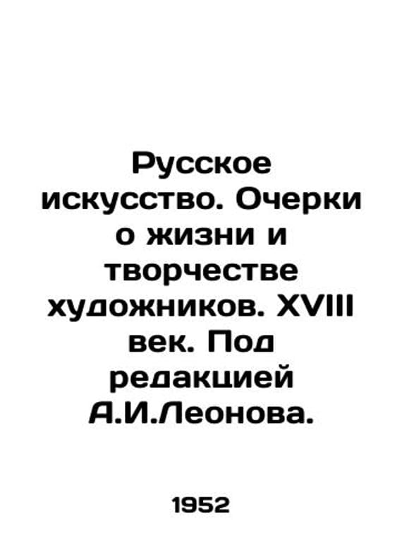 Russian Art. Essays on the Life and Creativity of Artists. The 18th Century. Edited by A.I. Leonov./Russkoe iskusstvo. Ocherki o zhizni i tvorchestve khudozhnikov. XVIII vek. Pod redaktsiey A.I.Leonova. Russian Art. Essays on the Life and Creativity of Artists. XVIII Century. Edited by A.I. Leonov. Moscow: Art. 1952. 396 p. We have thousands of titles and often several copies of each title may be available. Please feel free to contact us for a detailed description of the copies available. SKUbd-7c617b09d19629b3.