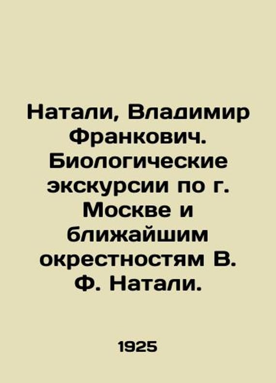 Nathalie, Vladimir Frankovich. Biological tours of Moscow and the immediate vicinity of V. F. Nathalie./Natali, Vladimir Frankovich. Biologicheskie ekskursii po g. Moskve i blizhayshim okrestnostyam V. F. Natali. Nathalie, Vladimir Frankovich. Biological tours of Moscow and the immediate vicinity of V. F. Natali-Moscow: New Moscow, 1925.-215.We have thousands of titles and often several copies of each title may be available. Please feel free to contact us for a detailed description of the copies available. SKUbd-7d03682dd6993585.
